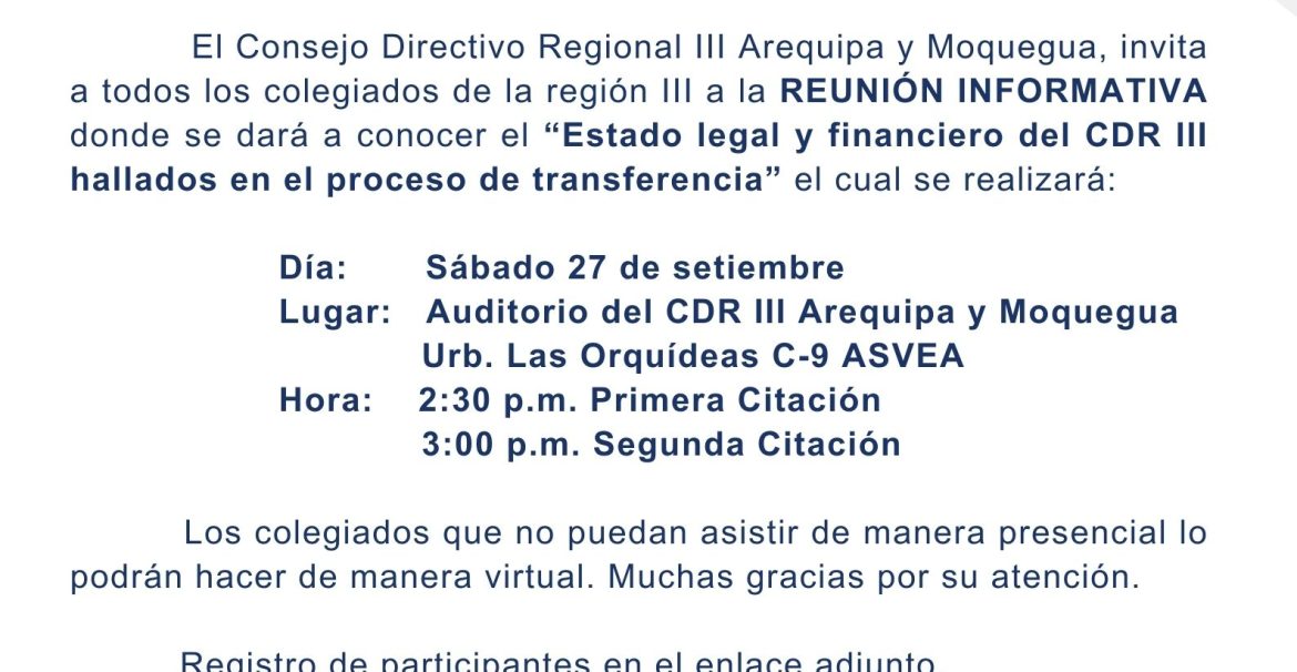 REUNIÓN INFORMATIVA: «Estado legal y financiero del CDR III hallados en el proceso de transferencia»