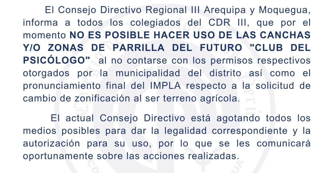 Comunicado sobre el uso de las canchas del terreno «El Pasto» en el distrito de Socabaya.