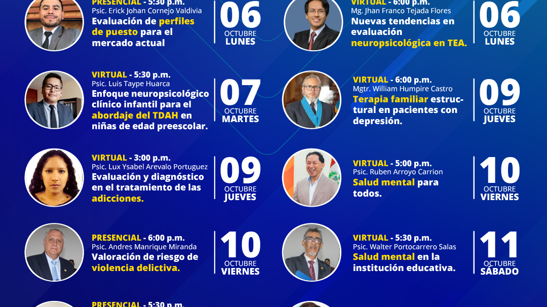 Del 06 al 15 de octubre, participa en ponencias presenciales y virtuales a cargo de especialistas en diversas áreas de la
