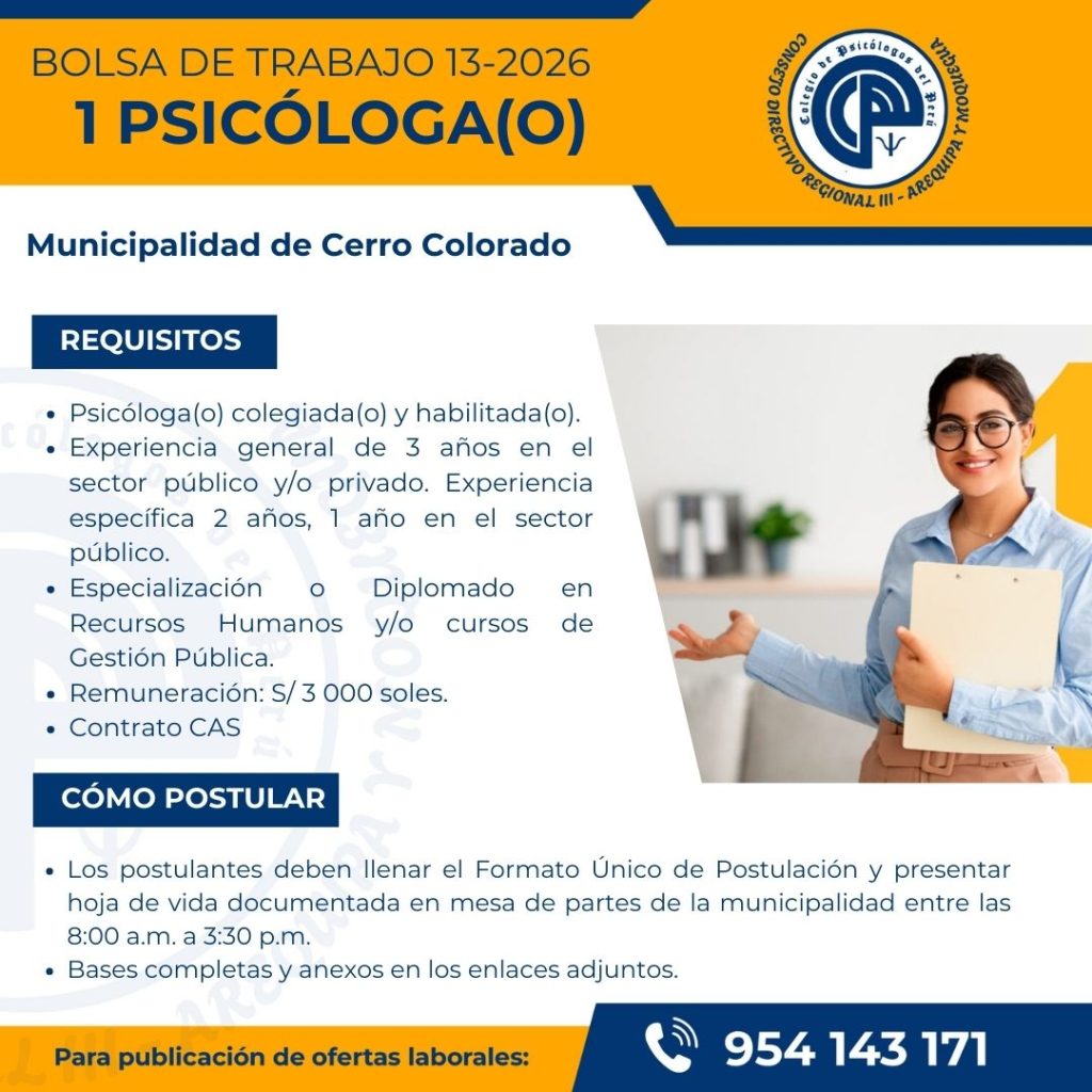 BOLSA DE TRABAJO Bases completas: https://mdcc.gob.pe/wp-content/uploads/2026/03/BASES-DEL-PROCESO-CAS-001-2026-MDCC.pdf?fbclid=IwY2xjawQeecpleHRuA2FlbQIxMABicmlkETFpam1lVWpiQnNxSXRqTjBKc3J0YwZhcHBfaWQQMjIyMDM5MTc4ODIwMDg5MgABHlwlZ2fJsaNJl-vl67kGKjaRQwSNi8AmFXq5mSrCcrLBR6WMk4WyXnpBiKWx_aem_wNRBxLoROO88lAaheKu9EgAnexo 1:https://docs.google.com/document/d/11dlyRfv1PcTBOpfEzPz60ujFTh-Med0p/edit?usp=sharing&ouid=105821011061564631602&rtpof=true&sd=trueAnexo 2:https://docs.google.com/document/d/1PHEqA6HH8tEwZHpEFSU6f-3x-0to_BqV/edit?usp=sharing&ouid=105821011061564631602&rtpof=true&sd=true