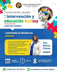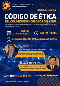 ¡Celebremos juntos las Fiestas Patrias! El Colegio de Psicólogos del Perú – CDR III Arequipa y Moquegua te invita a una tertulia imperdible: Ingreso libre ¡Inscríbete aquí: https://forms.gle/4DD4vsXMZ1jNyEbd8 Análisis crítico de la realidad peruana: El menú político Viernes 25 de julio 5:00 p. m. Auditorio del CDR III – Urb. Las Orquídeas C-9 Con la […]