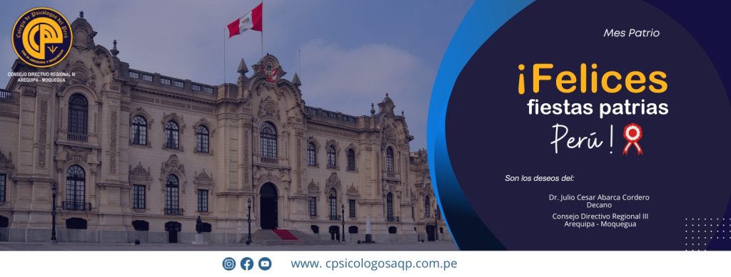 El Dr. Julio Abarca, Decano del Colegio de Psicólogos, les desea unas Felices Fiestas PatriasPor adminweb / julio 1, 2023