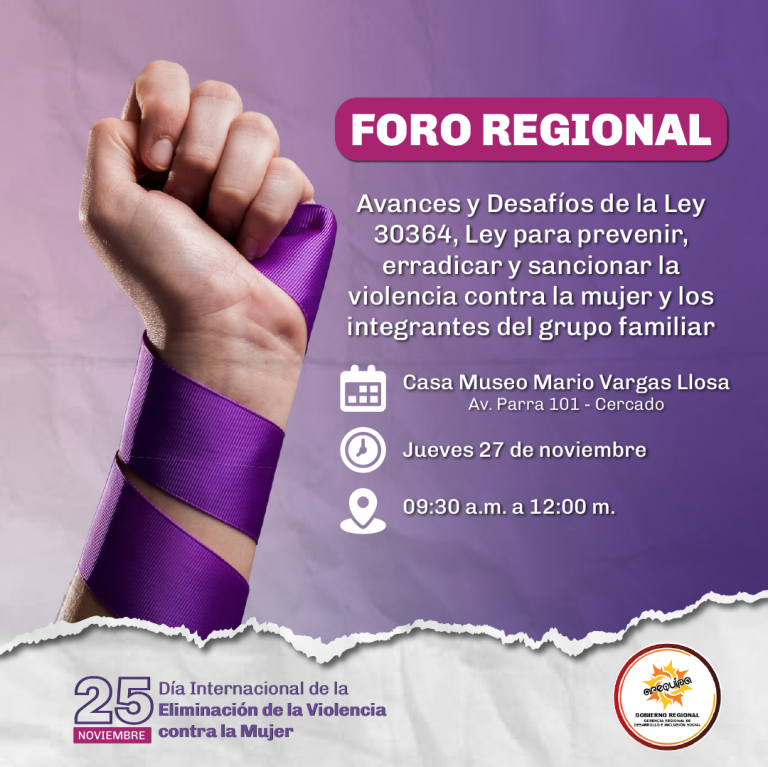 La Gerencia de Desarrollo e Inclusión Social del Gobierno Regional de Arequipa te invita a participar en el Foro Regional: “Avances y Desafíos de la Ley 30364, Ley para prevenir, erradicar y sancionar la