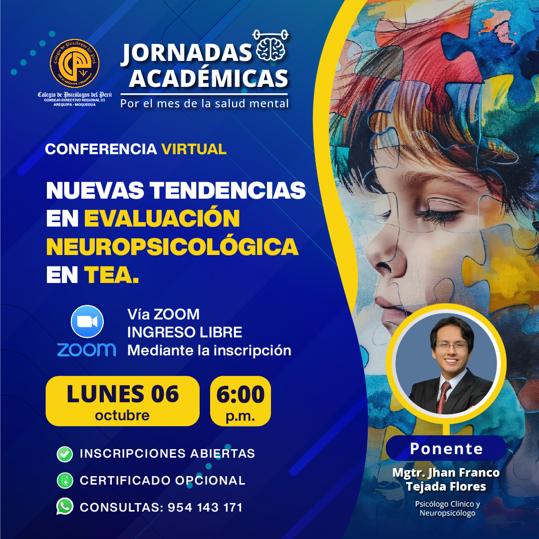👨🏫 Ponente: Mgtr. Jhan Franco Tejada Flores – Psicólogo Clínico y Neuropsicólogo.