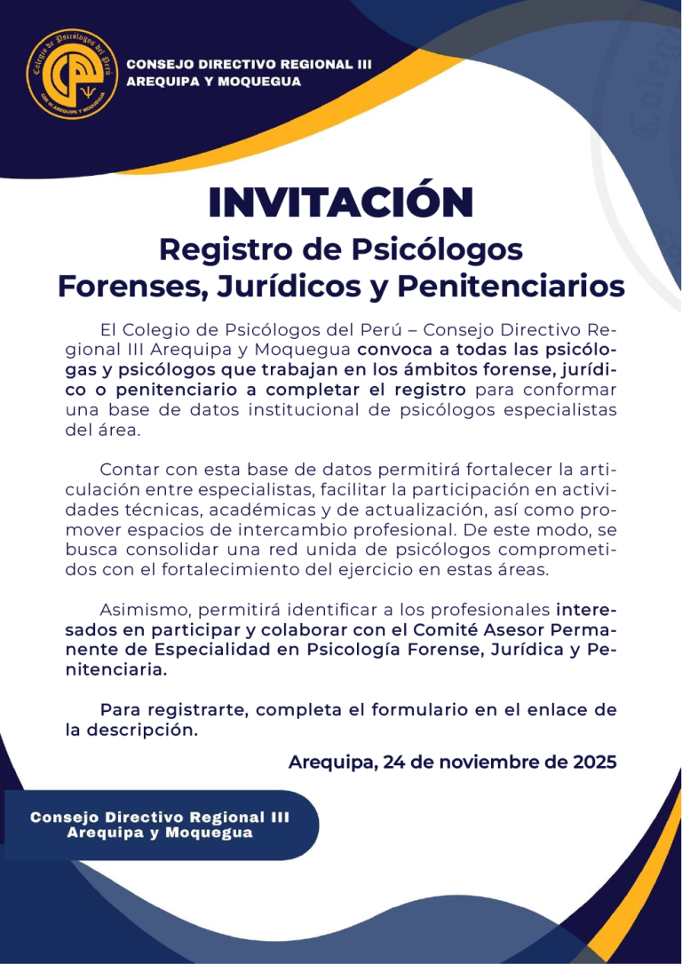 Registro de Psicólogos Forenses, Jurídicos y Penitenciarios.
